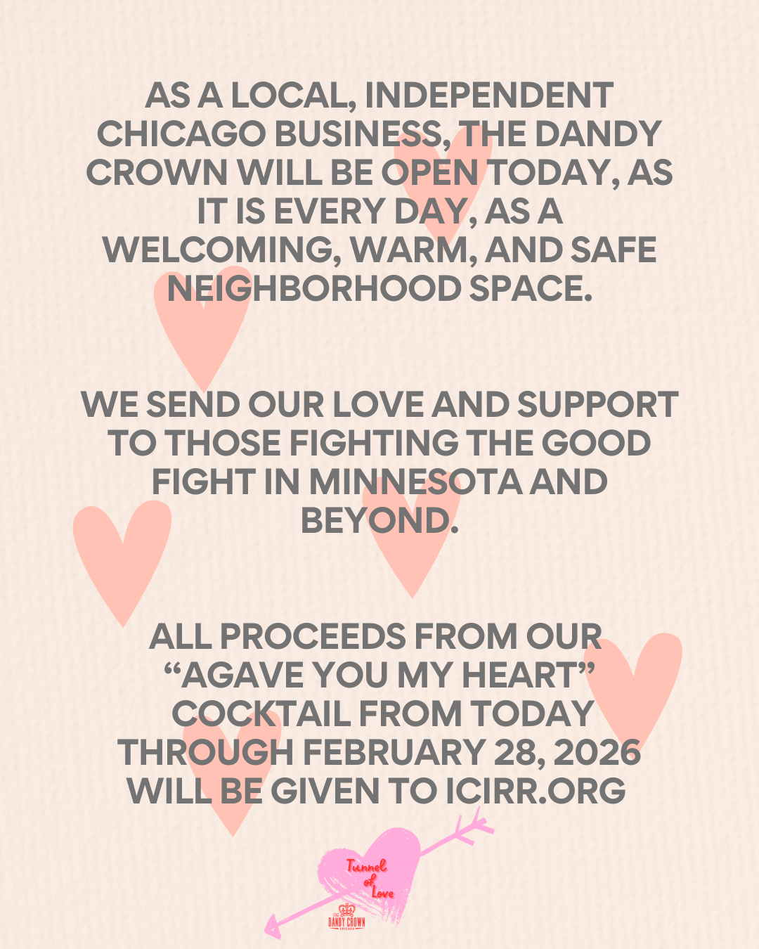 From January 30 to February 28, all proceeds of the "Agave You My Heart" cocktail will go to ICIRR.org